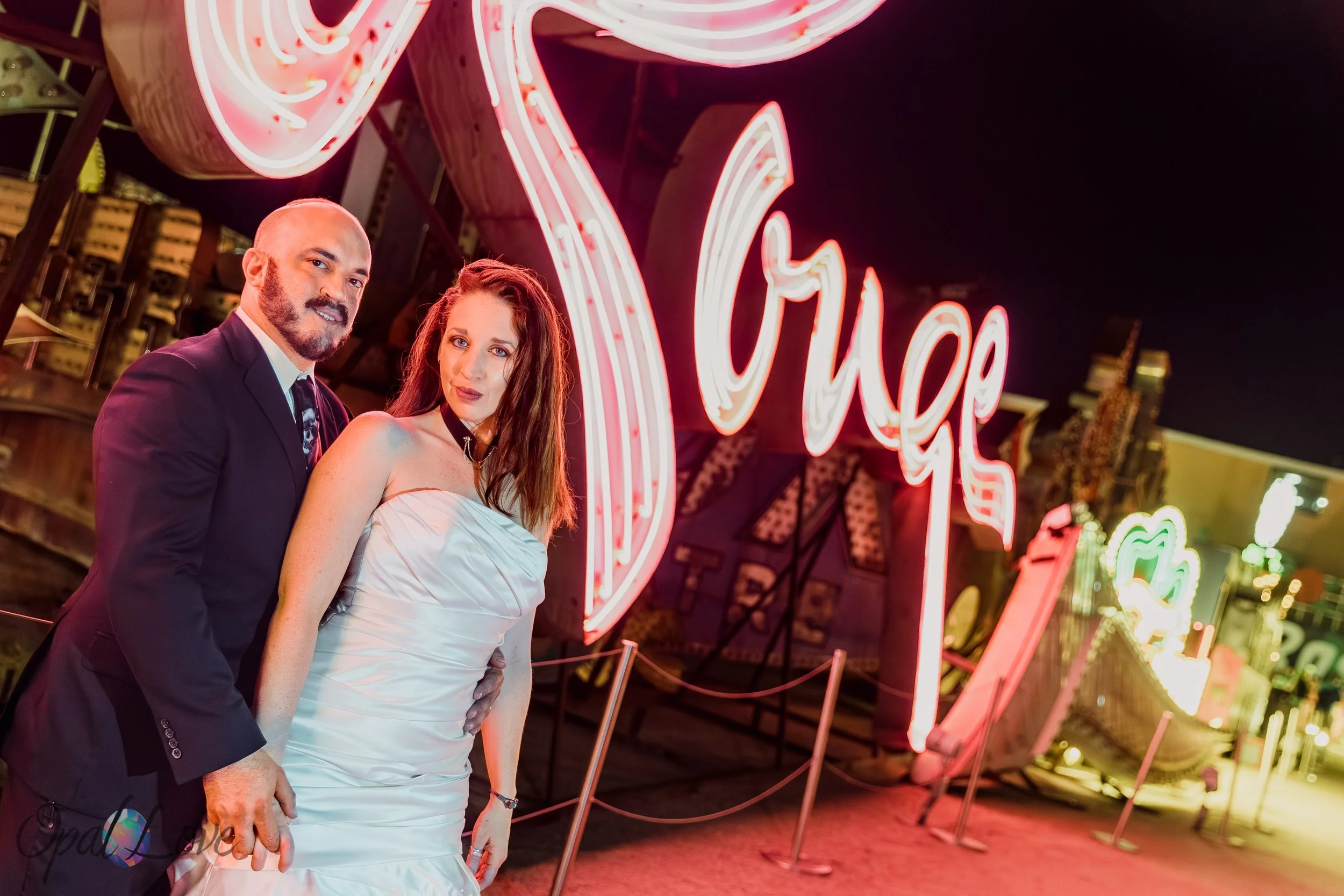 The Neon Museum, also known as the Neon Boneyard, is one of those places that truly captures the energy and nostalgia of Las Vegas. When Kelly and Mariano reached their 10-year wedding anniversary, they wanted something that felt fun, unique, and meaningful. What better way to celebrate than returning to Vegas for an intimate evening surrounded by glowing history?